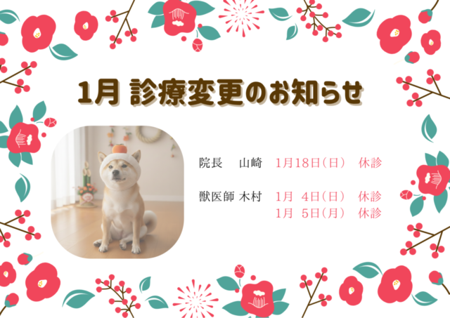 獣医師 木村:1月4日(日)・1月5日(月)休診