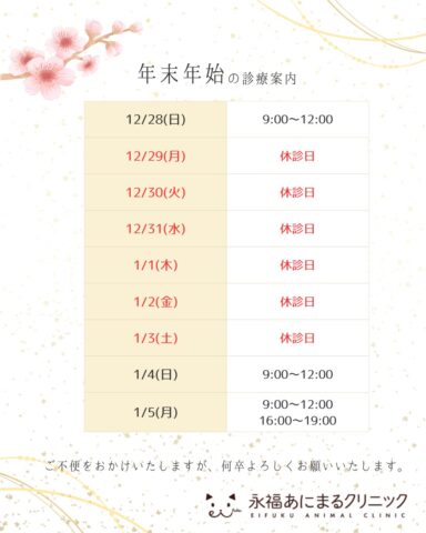 ※年末年始のお知らせ