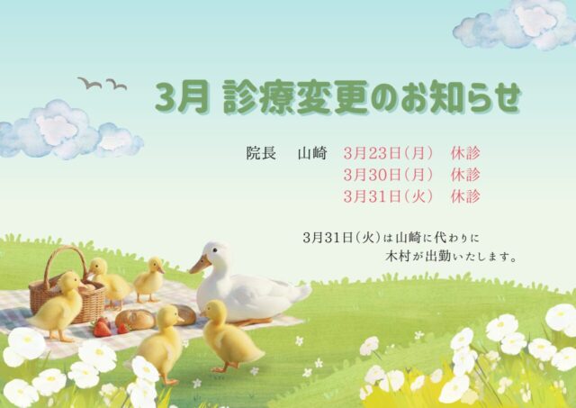 ※いずれの日程も獣医師の木村が出勤、診察いたします。